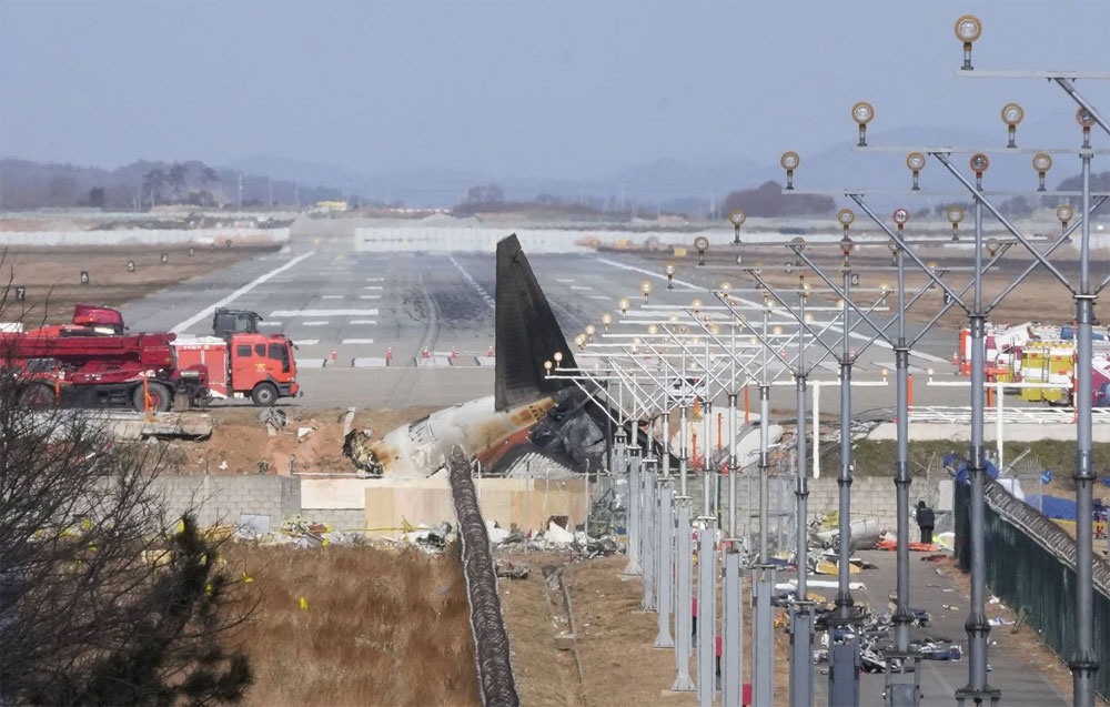 As the Boeing 737-800 approached Muan Airport's Runway 01, the control tower issued a warning about bird activity in the area. Moments later, the flight crew declared an emergency, reporting a bird strike that prompted an immediate go-around. A situation then developed wherein the aircraft executed a 180-degree turn to attempt a landing on Runway 19, the opposite direction of its initial approach. With calm winds ensuring performance safety, this change in landing direction posed no immediate issues. However, the aircraft performed a gear-up landing, touching down approximately 1,200 meters (3,940 feet) along the 2,800-meter (9,184-foot) runway - more than one third down the runway. The Boeing 737 ultimately collided with a wall and an antenna array situated on a 2-meter-high concrete and dirt mound.