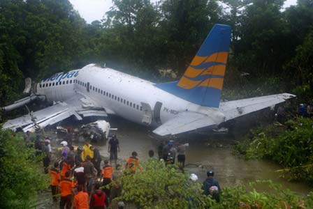 The plane touched down smoothly on its destination airport runway but it just didn't stop. It skidded off the runway, and came to a stop some 200 meters (650 ft) far from the runway threshold in a shallow river. The Merpati airline Boeing 737 broke in two pieces.